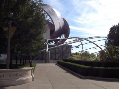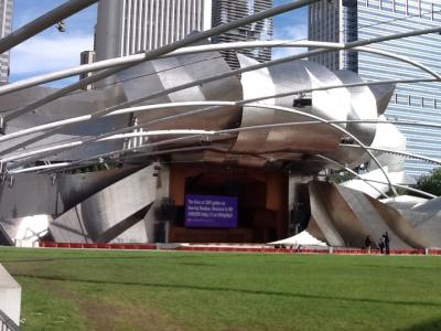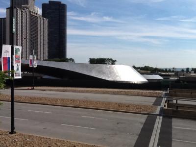 ミレニアムパークの中にある野外コンサートホールです。建築家のフランク ゲイリーがデザインしました。このコンサートホールには4000もの席が設備されている他、7000人が充分に座れる芝生もあります。