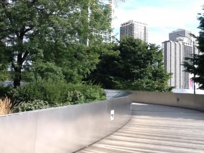 ミレニアムパークから行く場合、Jay Prizker Pavilionを通り過ぎて、ミシガン湖方向に向かうとあります。この歩道橋はクランパークとミレニアムパークを繋ぐ歩道橋だけではなく、ダウンタウンシカゴとミレニアムパークの景色を満喫することが出来ます。