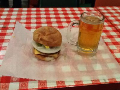 中に入るといかにもアメリカンな店員さんが顔をみるなり「ダブルチーズバーガーか?」と聞いてきました。あまりの勢いと強制感で(!?)ダブルチーズバーガーを頼み、その後に「なぜダブルチーズバーガーなのか?」と聞いたら、「みんなダブルチーズバーガーを頼むから」だそうです(笑)