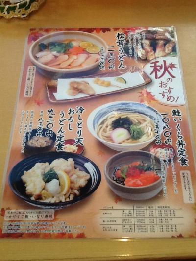 この日頼んだメニューは秋限定の松茸うどんでした。松茸うどん単品だと1130円でしたが、定食だと1230円なので定食を頼みました。定食のご飯はかやくご飯かいなり寿司を選べましたが私はかやくご飯を選びました。