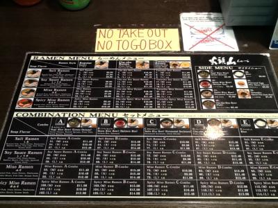 行った日が1/20のアメリカのナショナルホリデーのMartin Luther King,Jr.day(マーティン ルーサー キング牧師のお誕生日)でものすごく混んでいたので、ら~麺をオーダーするのに並んで10分、ら~麺を頼んで出てくるのに15分かかりました。