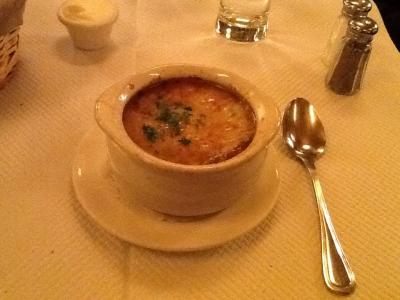 米倉涼子さんが絶賛していたオニオングラタンスープのセット(パン、サラダ、ドリンク一杯、デザート付き)を頼みました。