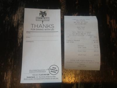 注意してほしいのが会計なのですが、通常はチップを15%以上払うのですが、このお店はチップがオールインクルーシブ(全部込み)で含まれているのでチップを払う必要がありません。