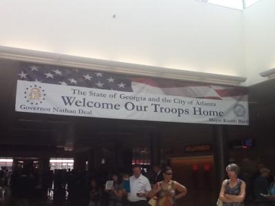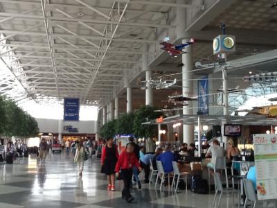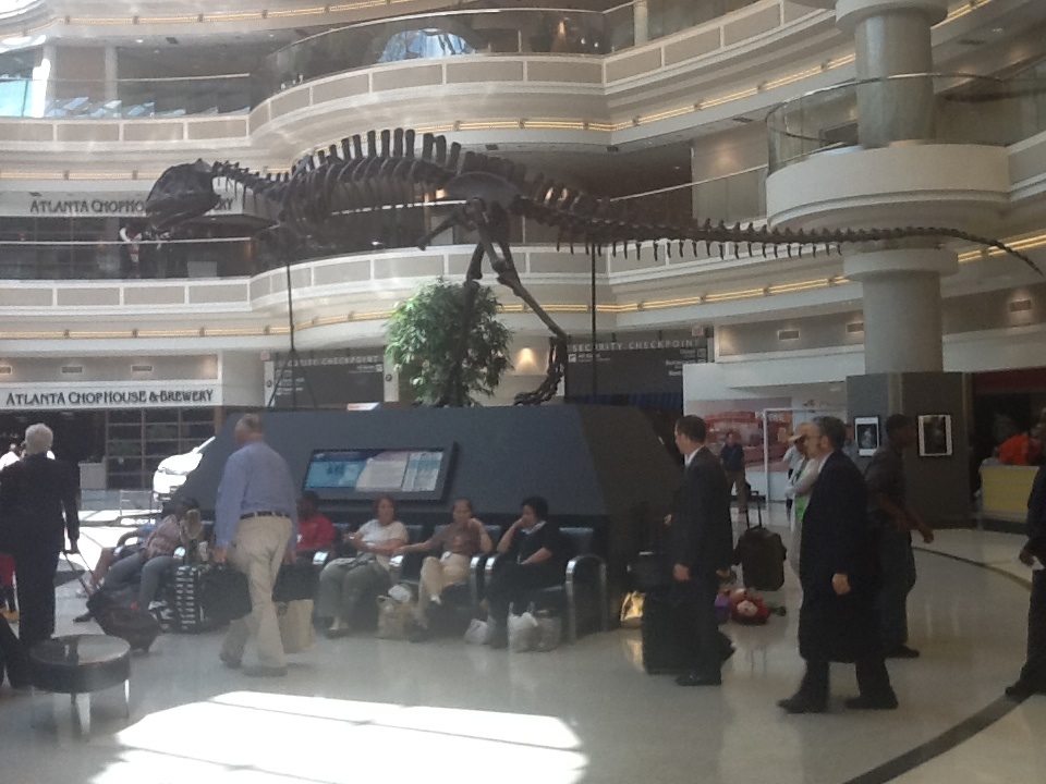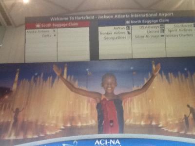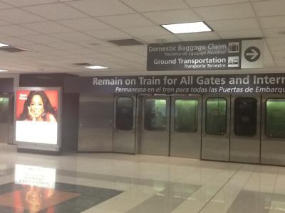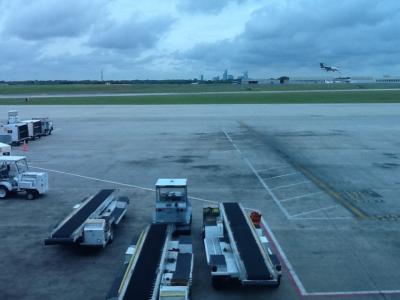 NYCのラガーディア空港からシャーロット空港で乗り換えてアトランタ空港に着きました。運よく無料で飛行機に荷物を預かってもらえた(アメリカの国内線は荷物を預けると一つ$25かかります。)ので飛行機を降りて、ピープルムーバという空港内を移動する無料の地下鉄にのって荷物を取りました。国内線なので入国審査はないのですが、飛行機を降りて荷物を取るだけで30分以上かかりました。空港内の移動の距離が長かったからです。私はUS エアウェイズ航空に乗りましたが、アトランタ空港はデルタ航空のハブ空港なのでデルタ航空の飛行機が一番多かったです。