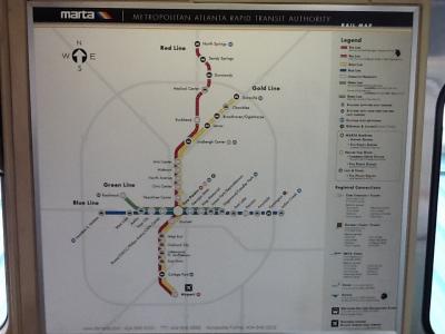 アトランタの東西、南北の地下鉄「MARTA Rail」4路線(レッドライン、ゴールドライン、ブルーライン、グリーンラインがあります。)とバス「MARTA Bus」90線余りを運行。アトランタ周辺の観光スポットは車が無くてもMARTAでほとんどカバーできます。マルタの料金はどこに行っても距離は関係なく$2.50均一です。地下鉄に乗る際は、Breeze Cardというカードを購入して($1)お金をチャージして下さい。一日に4回以上乗車する場合はビジターパスという乗り放題のビジターパスがお得です。