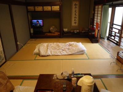今回、たまたま次の間付きの大広間にアップグレードで泊れましたが、本来、一人利用だと小部屋。浴室、便所(温水シャワートイレ1基あり)共同。- 旅行時期