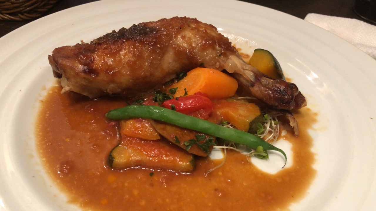 友人6人で訪れました。駅横の限られたスペースにあるのでテーブルは比較的小さめで、6人では手狭でした。また、テーブルが低めで足が組めない高さでした。椅子も座り心地がよくなく、長居は禁物?とは感じたものの、料理は美味しく、1480円の真ん中の価格帯のものにしましたが満足出来ました。前菜はどれも美味しく、かぼちゃのムース、サンマの南蛮漬け、ローストビーフは大変満足出来ました。メインも5種類くらいから選ぶことができ、楽しめました。また訪れると思います。