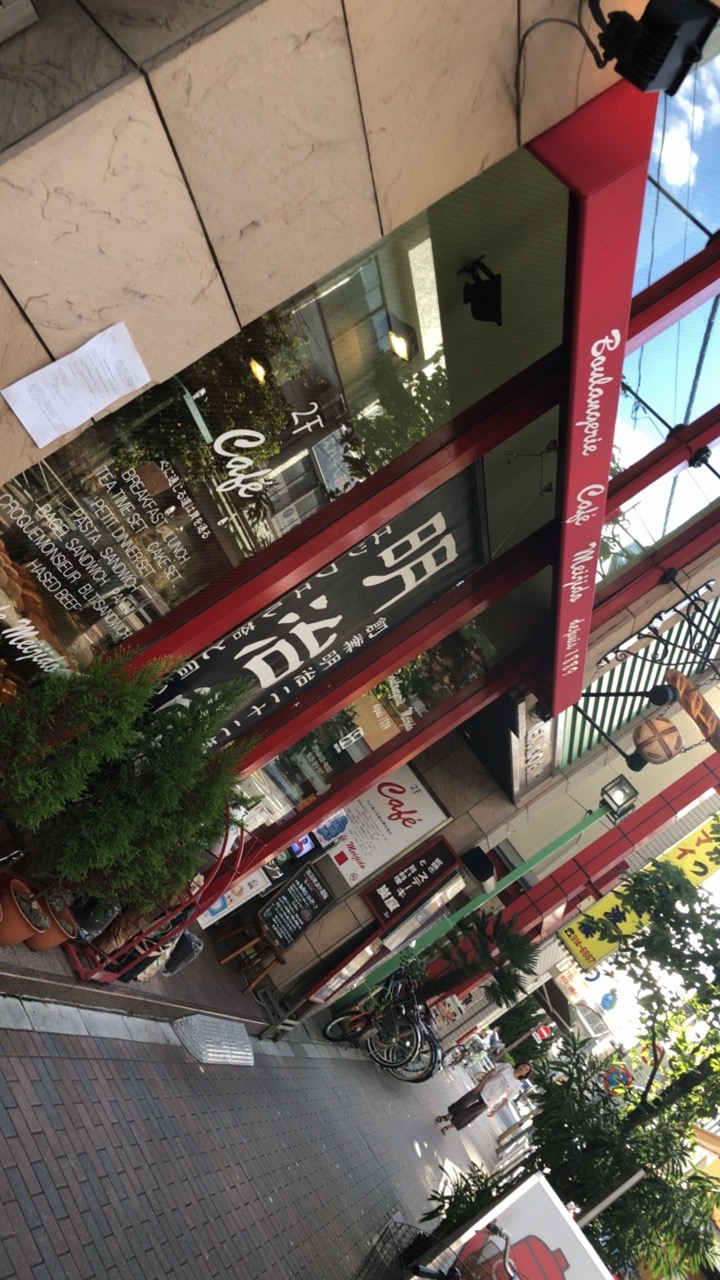 「たげん」というレストランでランチをした際に、明治堂のパンを使用しているとネットに書かれており、名前だけは知っていました。ランチ後にたまたま通った道に赤で装飾された目立つ店舗があったので目に留まって近寄ってみると、明治堂でした。二階にはカフェがあるようです。一階のパン屋さんをみると、一見普通のパン屋なのですが、上の棚には予約済みの方の持ち帰りパンがずらっと並んでいました。本当に人気店なのだと分かりました。食パンがとても美味しそうでしたが、イチジクのパンのみを今回は購入。際立って何ということはなかったのですけれど、自然で素朴な味が魅力なのだと感じましt。