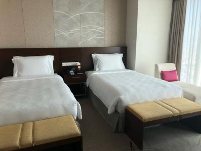 先日、台風の当日に電話で当日予約をしたところ、受け付けてくださり、タワースイートに宿泊しました。ヒルトン東京の中では公式の一番広いお部屋です。家族で宿泊したのでエキストラベッドを入れましたが、それでも十分に余裕がある部屋でした。