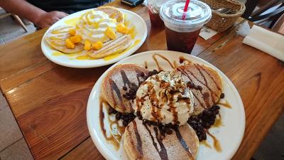 パンケーキはSサイズでもかなりの大きさです。あまり自信がない方はシェアして色々な味を楽しむと良いかもしれません。場所は観覧車のそばでとても分かりやすいところに位置していました。現地の方も多数訪れる、ホッとできるスペースのようです。