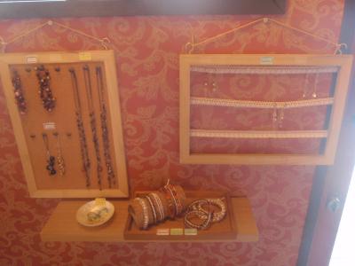 シェフの奥様が作られたというピアスやネックレスなどのアクセサリーが