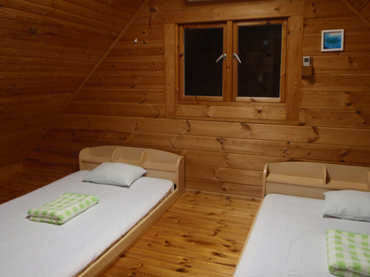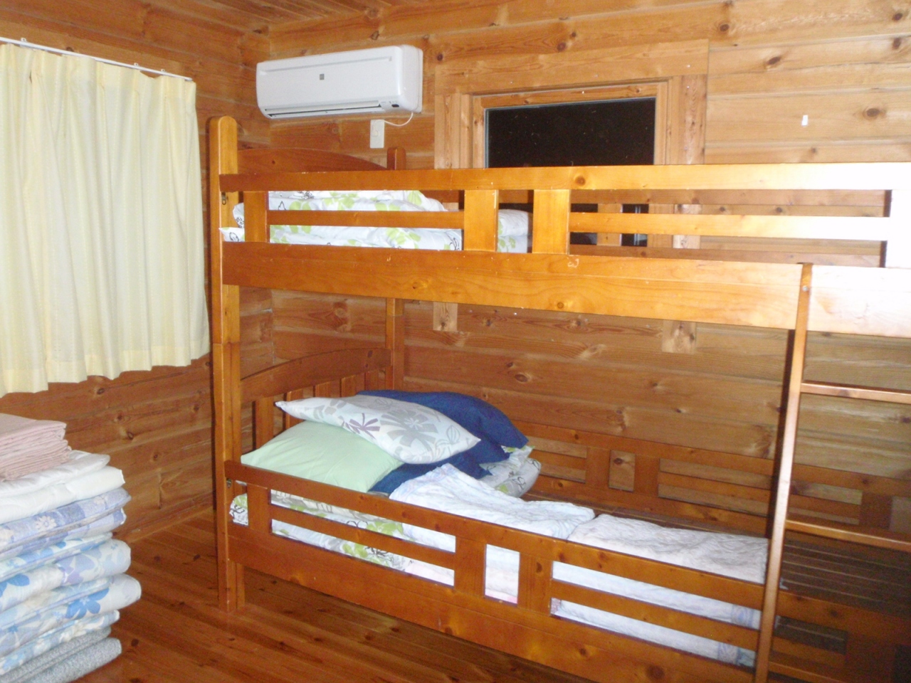 寝室は2階に一部屋(布団×2)、1階に一部屋(2段ベッド+布団)、
