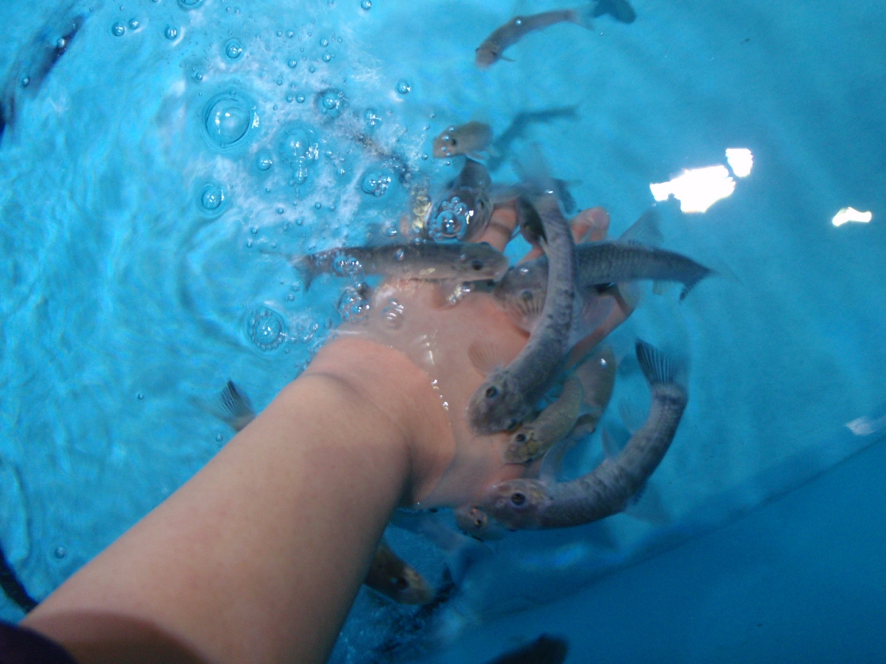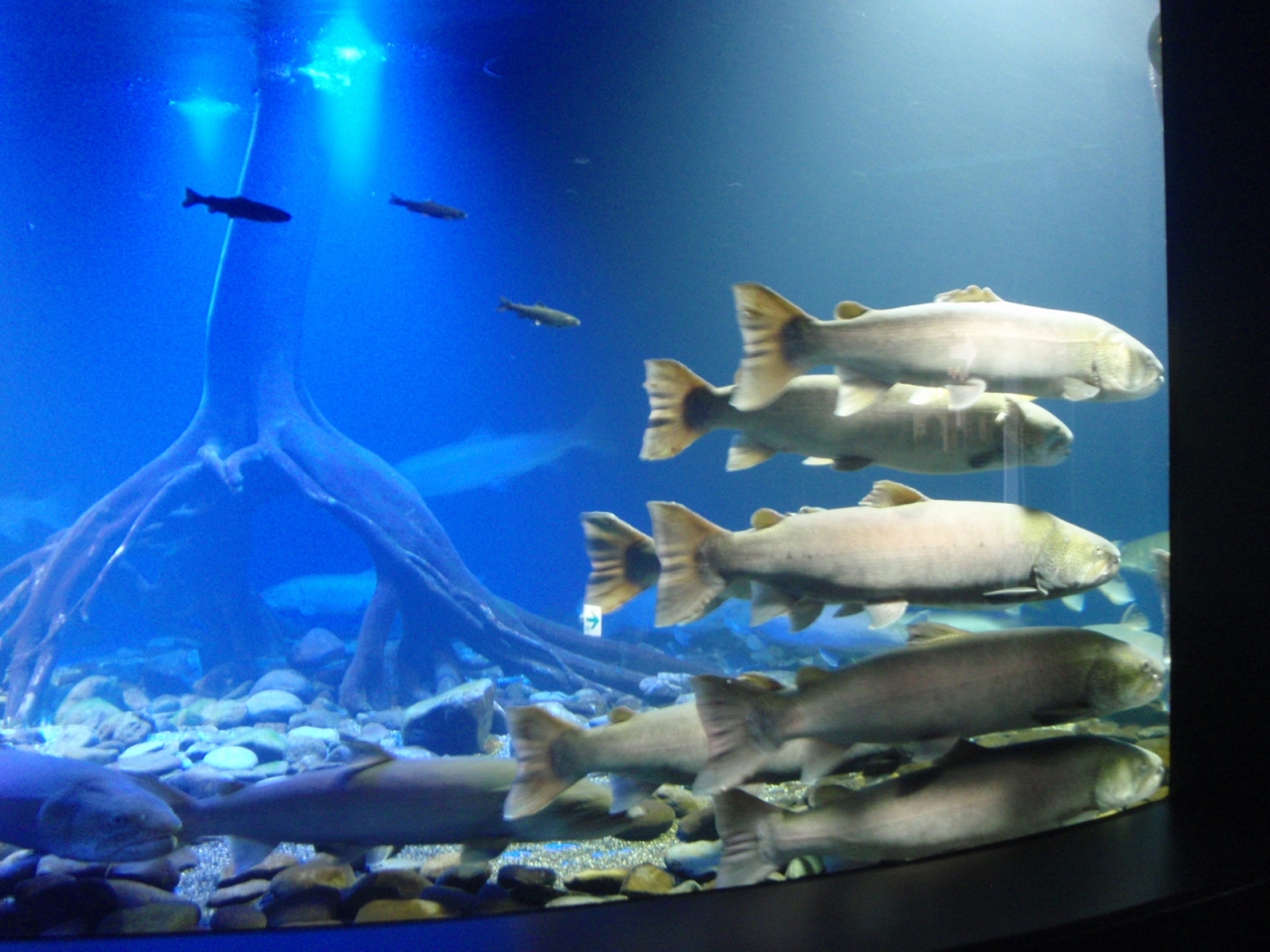 北の大魚イトウの水槽は、イトウの大きさに驚かされます。