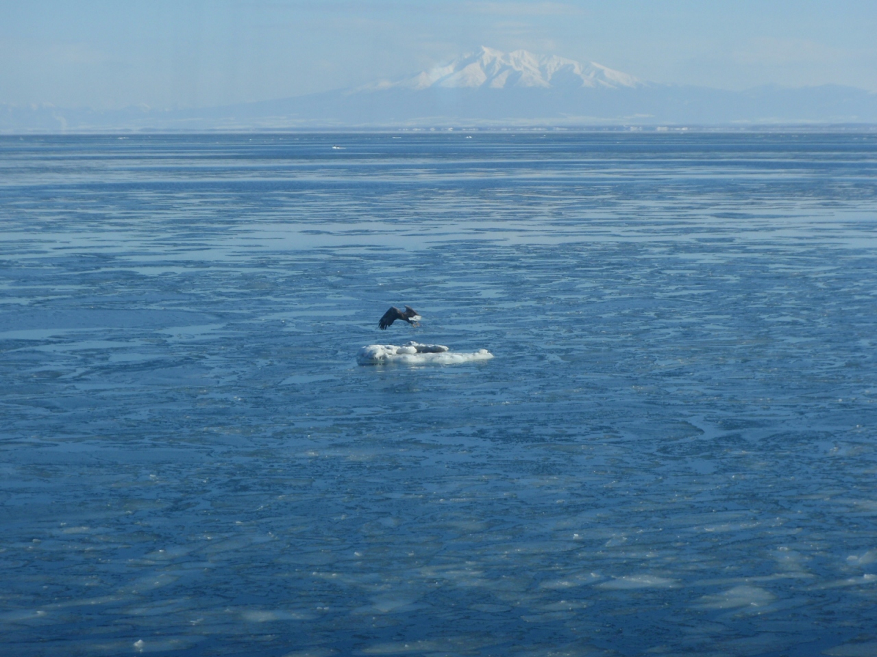 国の天然記念物になっている、オジロワシやオオワシが流氷の上で休んでいたり、