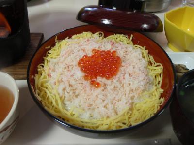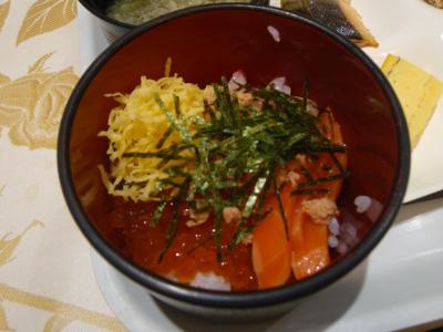 朝食のいくら、その他かけ放題の自分で作る海鮮丼は