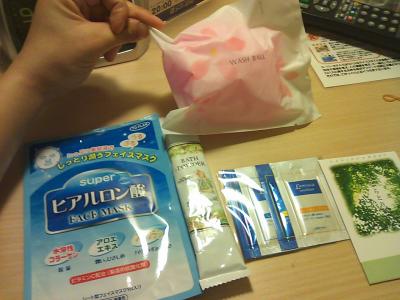 ここのスーパーホテルは、女性はチェックイン時に好きなアメニティを5つ自分で選ばせてくれるところ。私は、ウォッシュボール、パック、入浴剤、プチスキンケアセット(化粧水類とメイク落とし)、あぶらとり紙を選択。