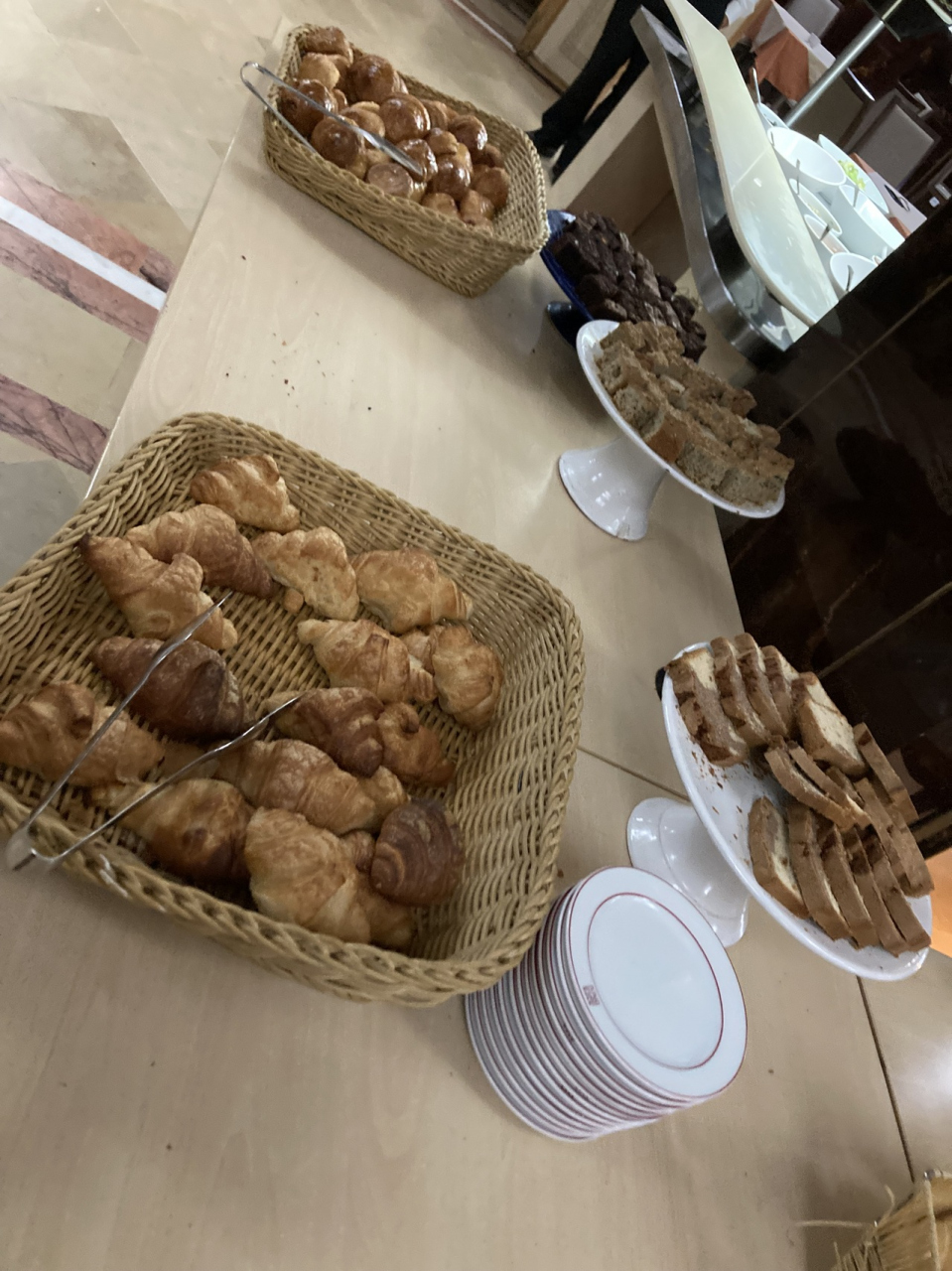 朝食バイキングは、日本の安いビジネスホテル程度の品数ですが、クロワッサンをはじめパンやオジャなどチュニジア料理も食べる事ができます- 旅行時期