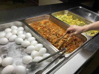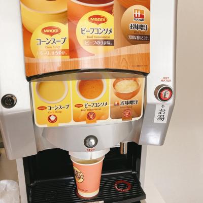 コンソメスープ、コーンスープ、味噌汁などの温かい飲み物も豊富です。