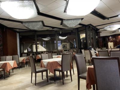 フロントのロビーや2回食堂は、ところどころ電気が切れていても電車内や駅と同じでそのまま放置されて、薄暗い。