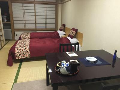 部屋は窓からの景色は今一つ。泊まった部屋は和室にベッド、イス、テーブルがあり、私の母のような膝の悪い方にはこういう方が良いと思います。
