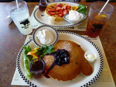 近所のBigBoyが潰れてBlack Bear Dinerになったので、行ってみました。ここはオープン以来いつも行列が出来ていてファミリー層に人気のお店です。パンケーキを注文しましたが、結構美味しかったです。