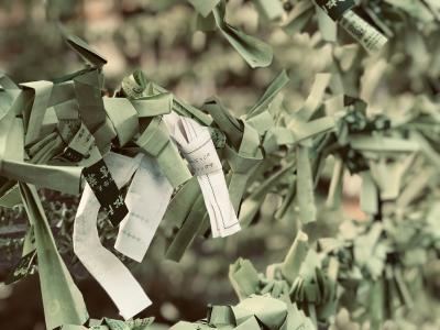 ・おみくじ、絵馬が結ばれていてとても神社感ある。
