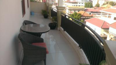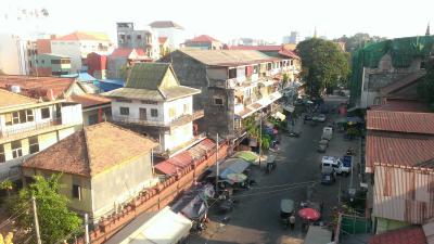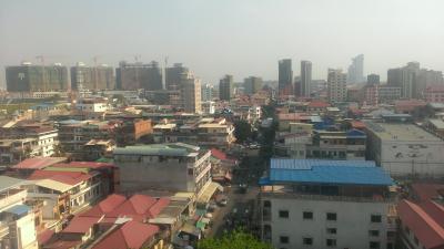 デラックスといってもそこまで広くはなかったが、無駄なものがなくまとまっている印象。バルコニーにはテーブルとイスが置いてあり、眼下にプノンペンの喧騒を眺められる。