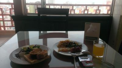 朝食はビュッフェで品数はあまり多くないが、許容範囲。