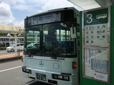 鹿児島空港の入り口にある路線バスのチケット売り場でチケットを購入。ICカードは、いわさき系列カードのみ、利用できるそうです。霧島温泉までは1時間に1本運行されています。空港から5分もすると、車窓は緑の木々のみで、最初は新鮮ですが、そのうちに見飽きてしまいます。山間の道なので、カーブが多いですが、約35分のドライブは気持ちよいです。