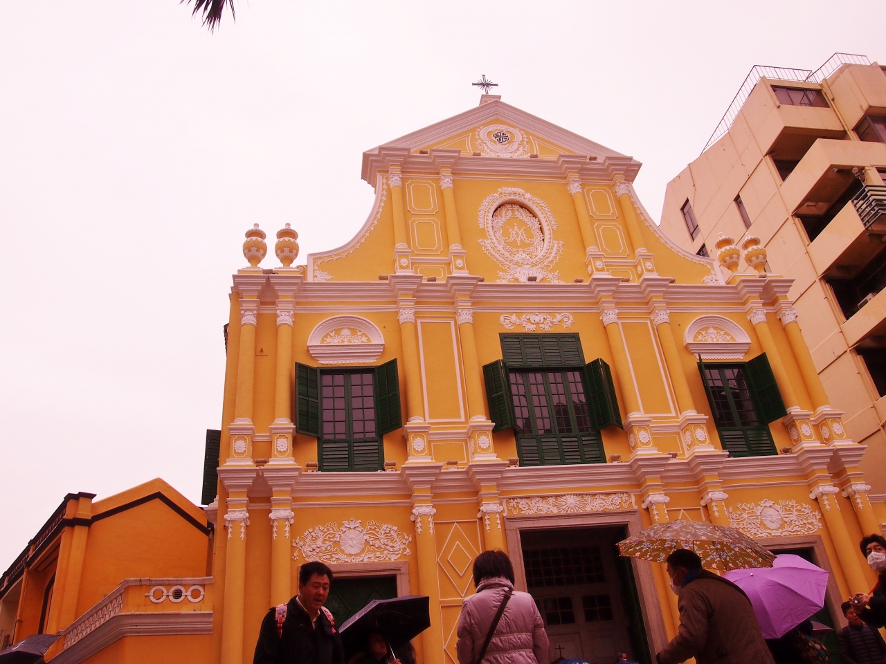 HISのツアーで、添乗員さんにマカオの、フェリーターミナルからバスで連れてきて貰いました。マカオのシンボリック的なところなので、日曜日ということもあり、大勢の観光客で賑わっており、建物だけの写真を撮るなどは、不可能な状況でした。大階段の下には何故かH&Mがありました。