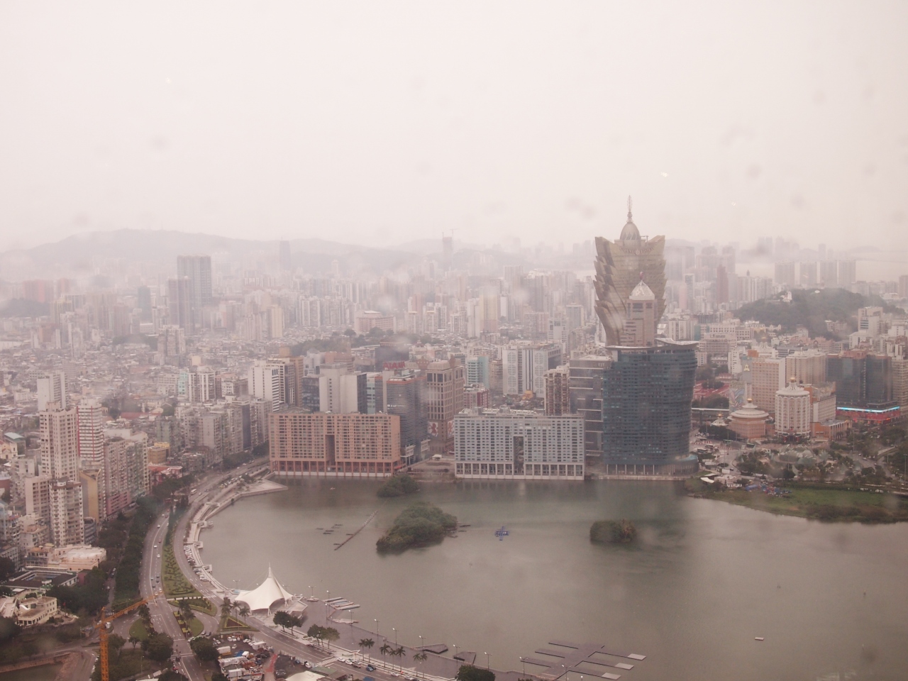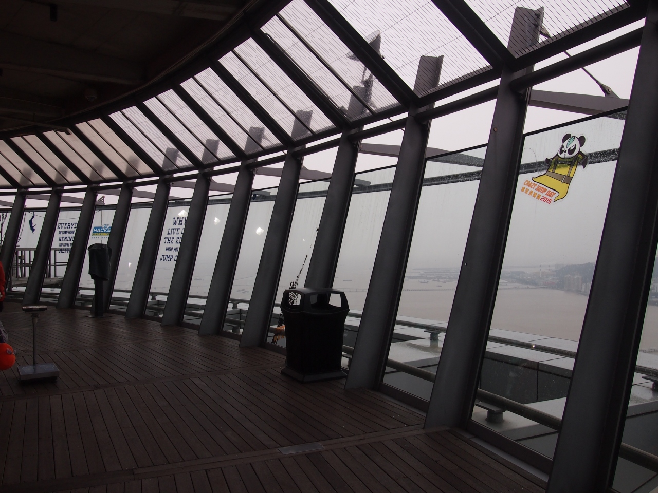 香港、マカオが寒気に覆われ記録的な寒さの日に、伺ったんですが、半屋外になってる、展望台の床は凍っていました。展望台からは中国も見ることができ、ちょっと得した気分でした。ちなみに、地階にはマカオらしくカジノもありました。