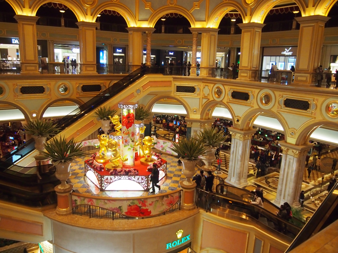 とても豪華絢爛な施設で、カジノでついつい使っちゃう雰囲気になりました。カジノに18歳未満は入れないみたいですが、エレベーターのあたりから、カジノ場を見ることができるので、子供もちらっとは雰囲気を感じれるでしょう。シェラトンからは屋根つきの陸橋で行くことができます。