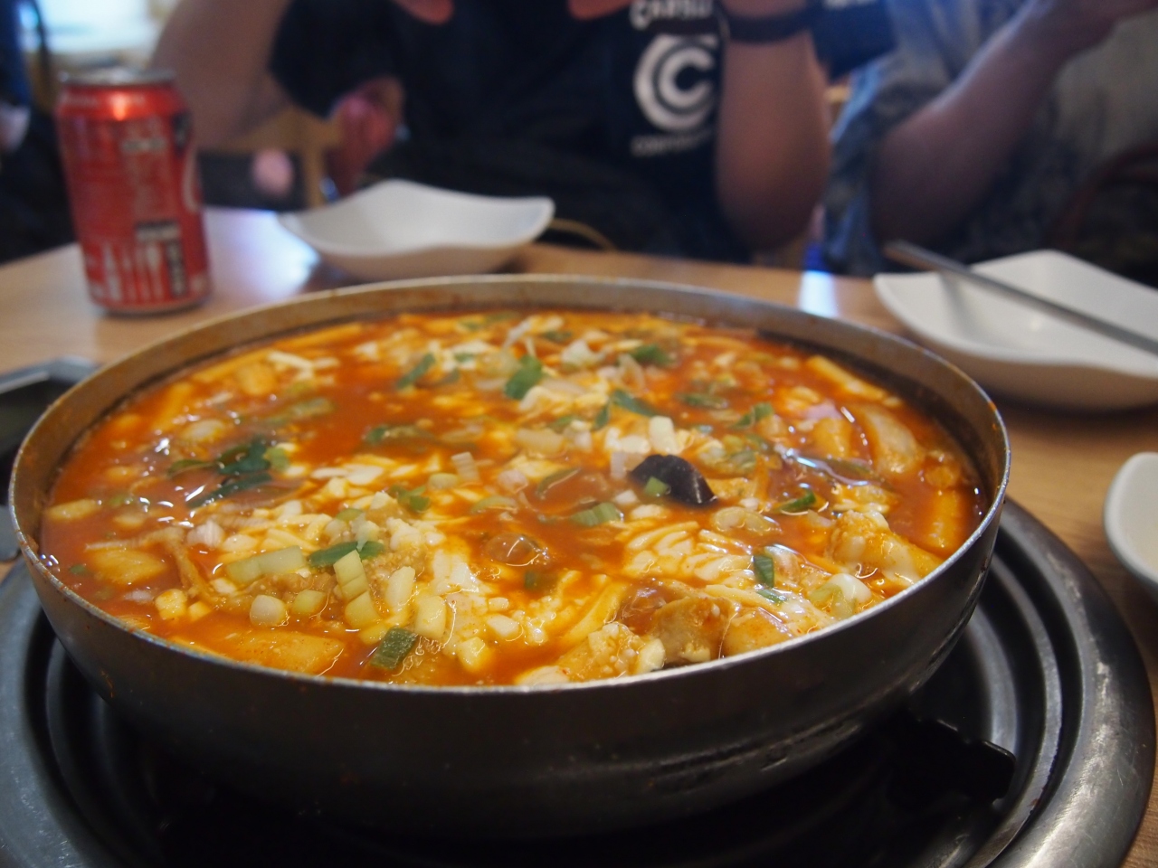 短大生と高校生の子供を連れて行きましたが、辛さ的には日本のキムチ鍋よりちょい辛い、程度でフツーに食べれました。うちは、トッピングはしませんでしたが、家族四人で海鮮を2チーズを2ポックンパを2でオーダーしちょうどいい量でした。〆のポックンパがとても美味しかったので激しくおすすめです