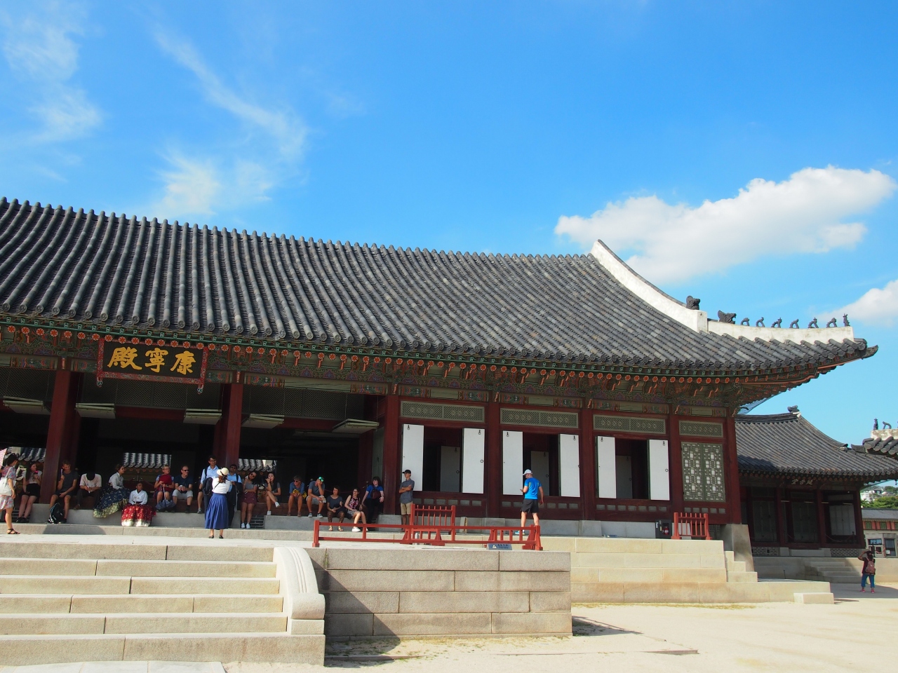 一日一回だけの11時からの無料日本語ガイドツアーに参加しました。前日に景福宮をガイドなしで見たのですが、結果あんまり心に残らなかったんで、日本語でガイドしてくださると、やっぱり、へーそうかと思うところがあり、見るなら、ガイドツアーに時間を合わせていくのがいいと思いました。自分は韓国ドラマは全く見ないのですが、韓国の歴史ドラマをよく見る嫁は、興味をそそる施設だったみたいで、ガイドツアーが終わった後も一人で、ウロウロ見てました