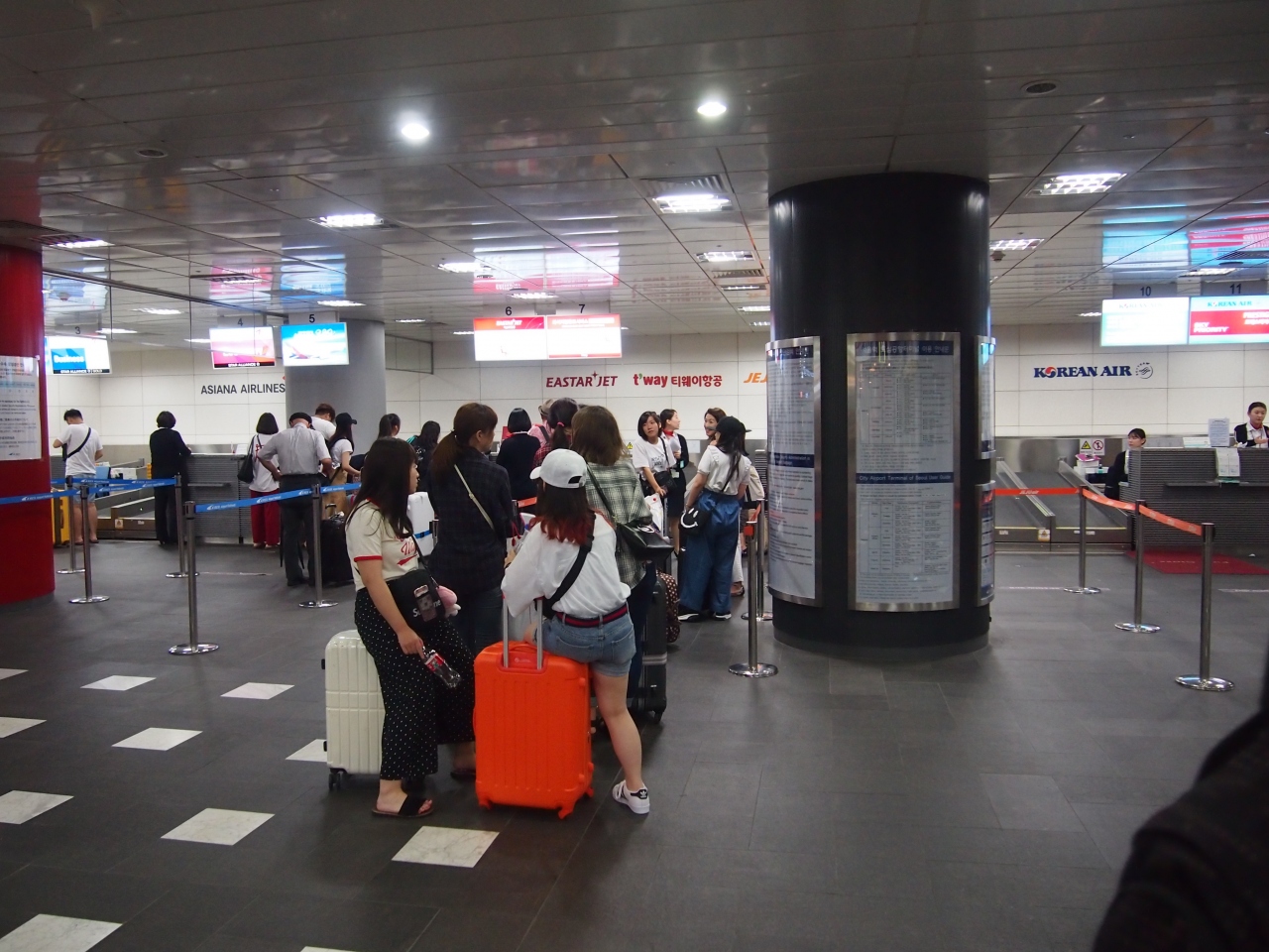 LCCのチェジュ航空を利用した際に、ソウル駅都心空港ターミナルでインタウンチェックインしました。メリットは、ホテルをチェックアウトして、スーツケースを、引きずって、街中をぶらぶらせず身軽に動ける事に尽きます。ガイドブックとかに、仁川空港の航空会社の長い行列に並ぶ必要がないと謳ってますが、自分は並びませんでしたが、僕の後ろからは10名ほどの列が出来てました。