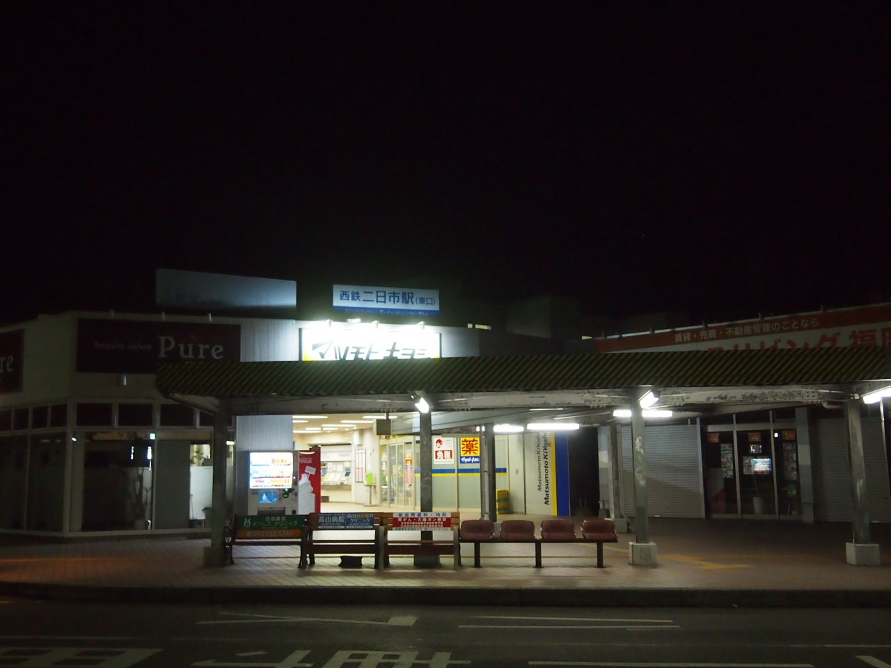 西鉄電車の本線である天神大牟田線から太宰府天満宮へ向かう太宰府線の分岐がある駅です。駅そばにはイオンがありますが、ダイエーから看板替えした店舗なので、大きくはありません。急行に特急も停まる駅ですが、駅前にマックなどのファストフード店はありません。居酒屋はそこそこあります。