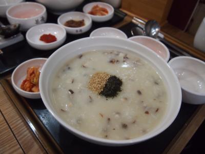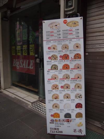仁寺洞のメインストリート沿いのビルの二階にありました。店内は狭く、テーブル席が8っつくらいでした。アワビ粥、アワビの肝のお粥、エビ粥を二個注文しましたが、かなり量が多く、9時頃朝飯として食べたんですが、昼になっても腹が減らず、昼飯をその日は抜きました。お粥は薄口で小鉢のお肉のしぐれにの様なもので、味を調えながら食べました。シェアして食べてる人もいたので、小食の人はシェアがいいかもです