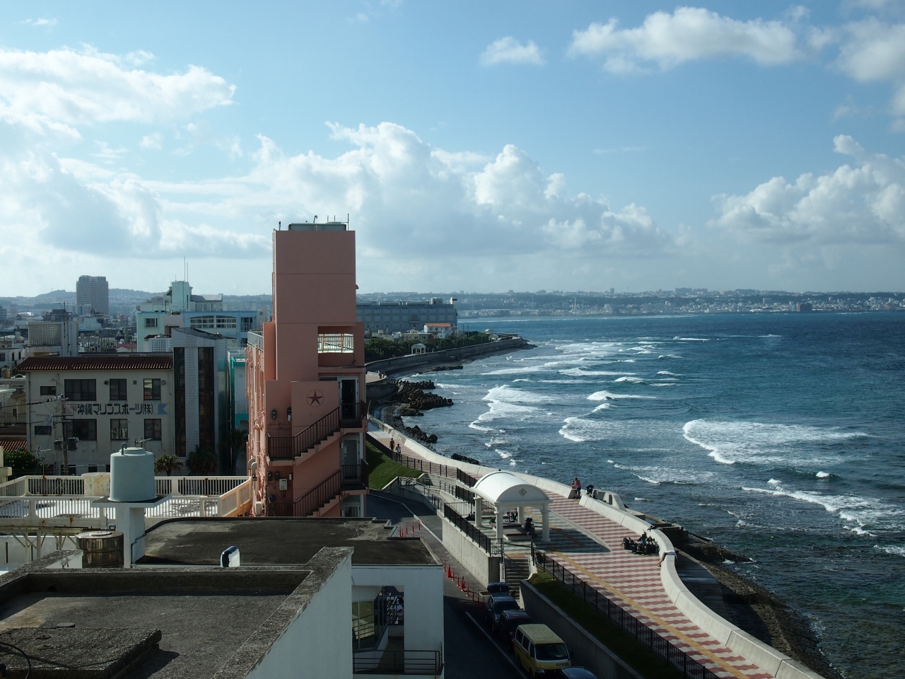 一人旅で利用しました。全体的にキッチンの無いワンルームマンションのような作りのホテルです。外壁は塗りなおしていて、綺麗になってました。ホテルの前は、海ですが、ビーチではなく、防波堤があって、テトラポットとかが置かれています。フロントの若いスタッフたちの接客は好感が持てました。アメリカンビレッジには、車がないとかなり遠いです。