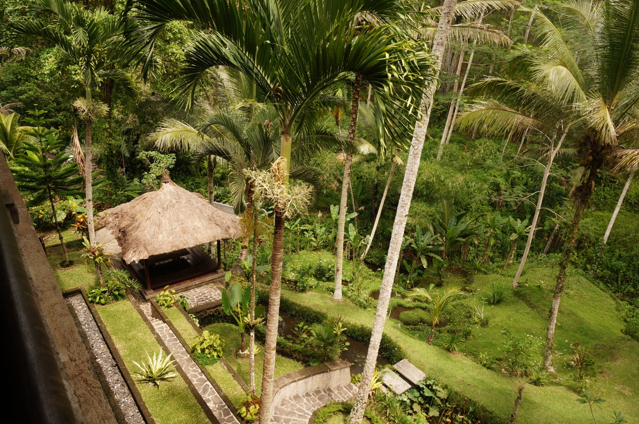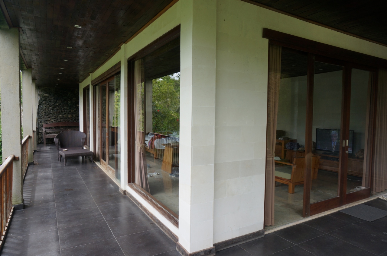 テラスからの眺めは抜群、しかし午後激しいスコールとなり屋根からかなりの雨漏り。