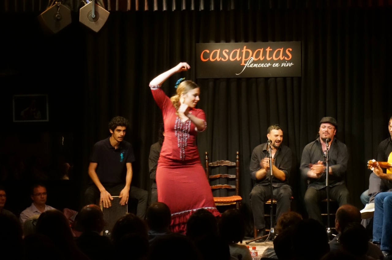 スペインで、グラナダのロスタラントス、マドリッドでチニータス、カサパタス、カルダモモの3か所に行きましたが、ここでのフラメンコは王立音楽院近くの影響か(?)一番の繁華街にあるためか、エレキベース、電子ピアノが入り、この人はジャズマン(?)と思われる人もセッションに入っており、ちょっと現代風フラメンコ。