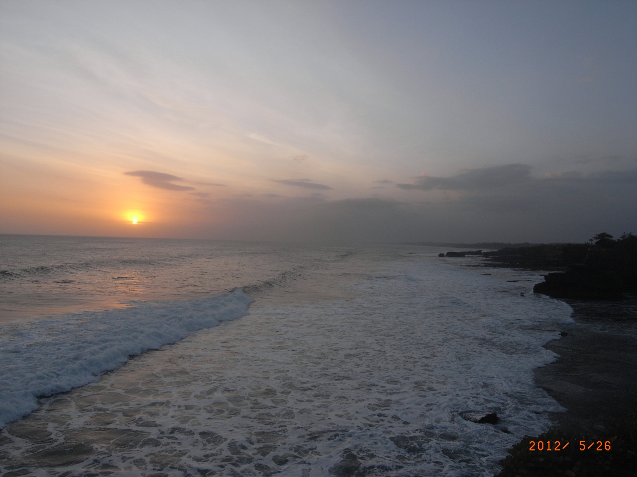 どこでサンセットを迎えるかは重要です。私は海に向かって右側のスポットで待機しましたが、タナロット寺院越しに夕日が沈むのを見るなら、左側でもよかったかな・・とも思います。- 旅行時期
