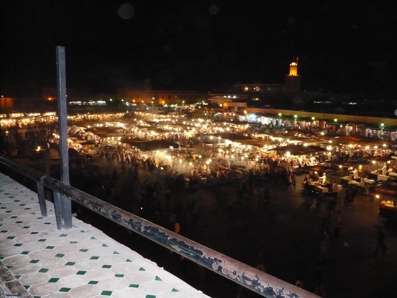 モロッコツアーに参加し、マラケシュでの夜、昼間ツアーで訪れたフナ広場に妻とツアー仲間の若い女性と3人でフナ広場のナイトバザールでの出来事。