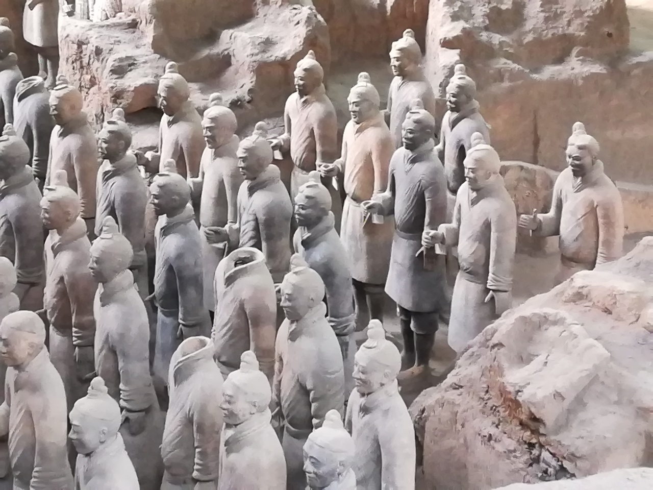 兵士俑を良く見るとお顔が1人1人違うし、猫背の人や胸板が薄い人がいます。