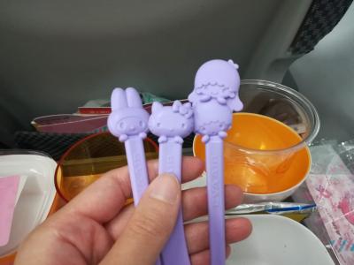 がたいの良い男性がサンリオカトラリーで食事しているのはなかなかシュールです。