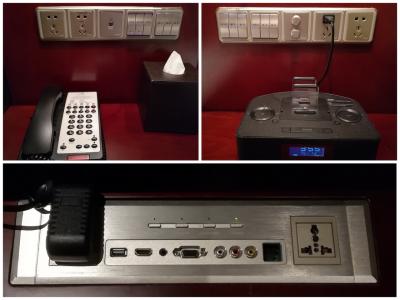 客室は冷蔵庫、ポット、ドライヤー、枕元にはコンセント1口、USB1口あり。