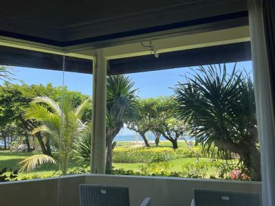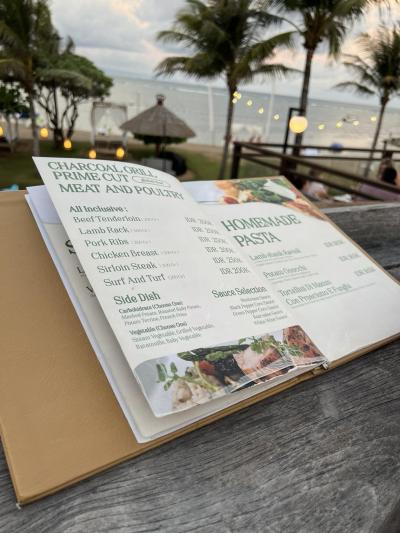 バリでオールインクルーシブのホテルが3つか4つしか見つからず・・。海が見える部屋でとなるとますます選択肢がなく、こちらにしました。高かったけどやはりオールインクルーシブって快適なんですよね・・。1杯いくら?って考えながら頼むよりも。フレッシュジュース好きとしては、フレッシュジュースもオールインクルーシブに含まれていてうれしかったです。カフェラテもちゃんと牛乳とエスプレッソで作ってるもので美味しかったです。海の色は濃い青です。オールインクルーシブ3泊で空港送迎とひとり1日2枚ランドリーサービスを受けることが出来ました。近くにマッサージ屋さんがいくつかあり通いました。(ホテルのスパは高そうなので行かず)9月は乾季でしたが午前だけ大雨が降った日がありました。