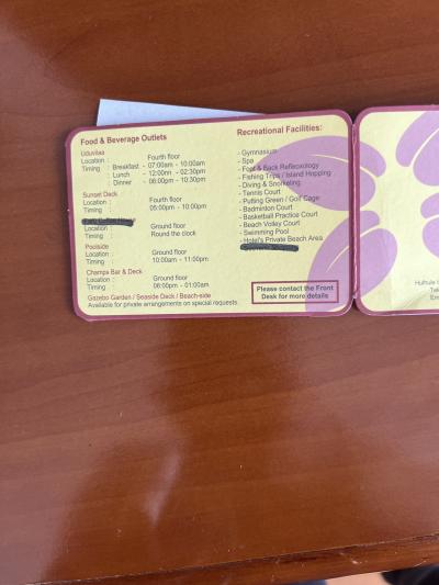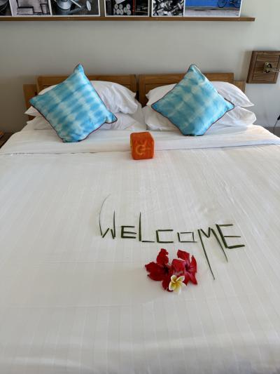 マレの空港までバスで迎えにきてもらいました。待ち合わせの場所に諸説あり、少しとまどいました。事前に連絡していた件で来てくれたのか、着いてから電話したから来てくれたのか私の英語力不足もあり、わからないまま。。まあ、そんなに遠くないので、厳密にやらなくてもすぐ行きますねーってな感じなのかもです。朝食が意外と種類がおおくて満足でした。夜ご飯はホテルのレストラン?バーで。室内は冷房が寒すぎて外で食べてたら蚊がいました。