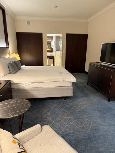 少し歩きますが駅から徒歩圏内。他に高い建物がそんなにないので、部屋からの眺めがよかったです。駅の隣にあるショッピングモールにスーパーが入っていたり便利。バス停も地下鉄も近いです。ウリである?プールは、部屋と同じ眺めだったので、そこまで感動しなかったかな?プールは事前にwebから予約が必要でした。朝食は品数はまあまあ。早朝にはないのですが、そのうち外にシャンパンがでてきました。スムージーもありました。卵料理ステーションあり。店員さんの数が多くて目が行き届いていました。