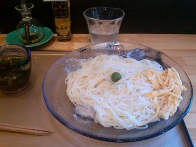 この時期に味噌味か!!と言われそうですが、また多くの人は(多分地元の人も)涼しげなさらっと醤油味のつるつるのどごしの冷たいきしめんを食べていましたが、あえて味噌仕立て山掛け月見きしめんにしました。