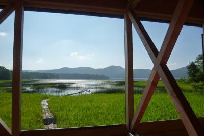 山の借景と周囲の畑も景色となっていました。上の東屋は涼しく眺めは最高でした。- 旅行時期